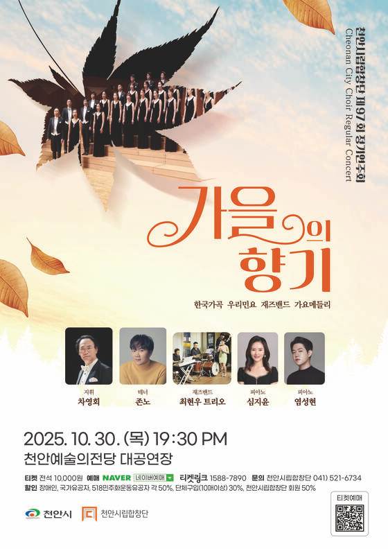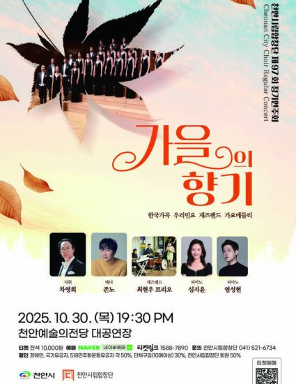 천안시립합창단이 오는 30일 오후 7시 30분 천안예술의전당 대공연장에서 제97회 정기연주회 ‘가을의 향기’를 개최한다.