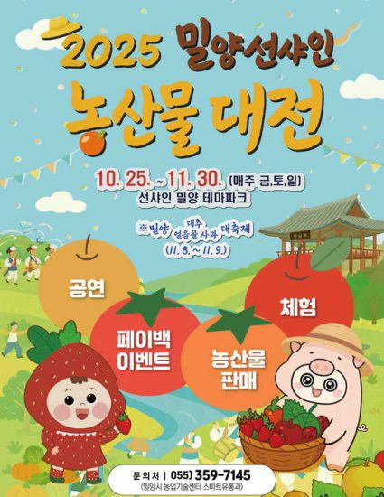 밀양시 관계자는 “밀양 선샤인 농산물 대전은 밀양의 우수한 농산물과 농업인의 정성을 한자리에서 경험할 수 있는 소중한 축제의 장”이라며 “많은 시민과 관광객들이 방문해 밀양 농산물의 우수성을 직접 체험하고, 지역 농업과 경제에 활력을 더하는 계기가 되기를 바란다”라고 말했다.