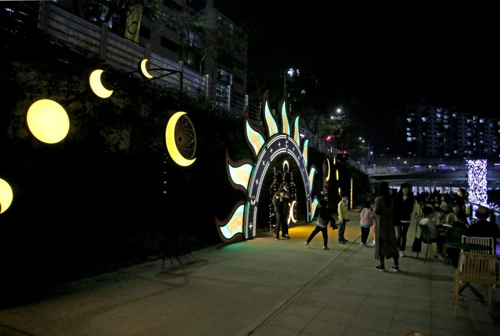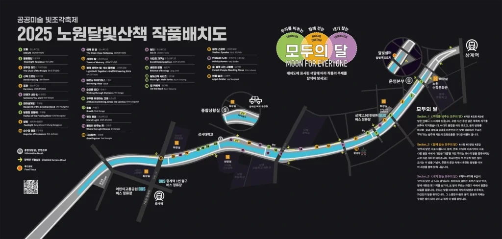 달빛산책은 상계역/노원수학문화관부터 중계역/당현1교까지 당현천 산책로 2km 구간에서 펼쳐집니다.