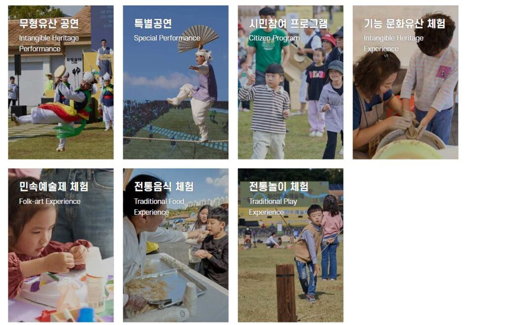 – 부산시 무형유산 공연: 동해안 별신굿, 다대포후리소리, 수영농청놀이, 구덕망깨소리