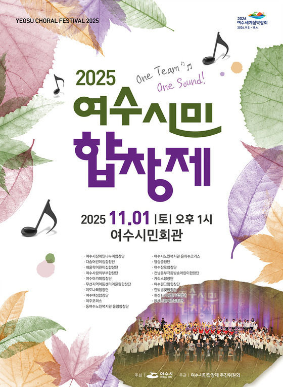 여수시(시장 정기명)는 시민이 함께 만드는 화합의 무대 ‘2025 여수시민합창제’를 오는11월 1일(토) 오후 1시부터 여수시민회관에서 개최한다.