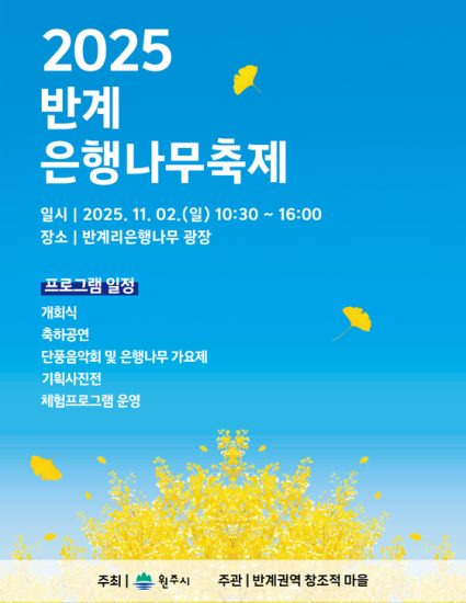 원주시는 오는 11월 2일, 문막읍 반계리 은행나무광장에서 ‘2025 반계리 은행나무 축제’를 개최한다.