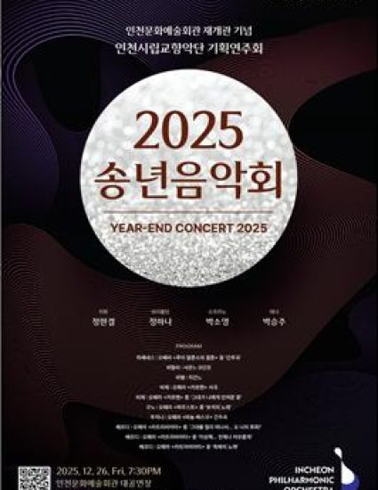 인천시립교향악단(예술감독 최수열)이 한 해의 마지막을 화려하게 장식할 인천문화예술회관 재개관 기념 기획연주회 〈2025 송년음악회〉의 프로그램과 티켓 예매 일정을 전격 공개했다.