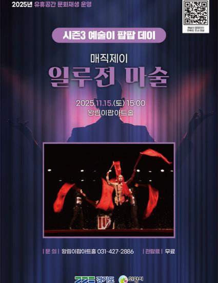 의왕시 이팝아트홀(의왕시 왕곡로 74)이 11월 15일(금) 오후 3시, 국내 정상급 마술사 매직제이가 선보이는 환상적인 공연 ‘일루전 마술쇼’를 개최한다.
