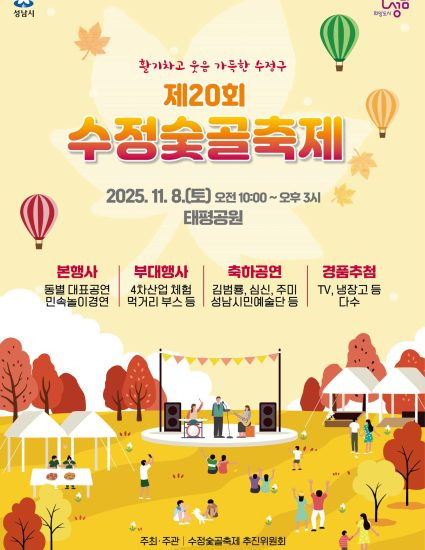 ‘제20회 수정숯골축제’가 오는 11월 8일 오전 10시~오후 3시 태평공원(수정구 수정로 7)에서 열린다.