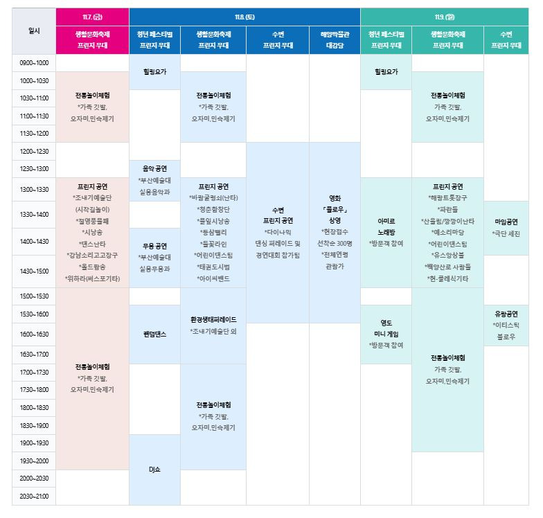 -11월 7일부터 9일까지 아미르공원(동삼동 국립해양박물관 옆), 봉래물양장 및 영도대교 일원에서 개최