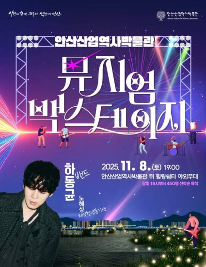 이번 행사에는 감성 보컬리스트 하동균이 풀밴드로 참여해 ‘그녀를 사랑해줘요’, ‘나비야’ 등 대표곡을 포함한 라이브 공연을 펼친다. 안산 지역 청년 뮤지션도 오프닝 무대에 올라 가을밤의 시작을 함께한다.