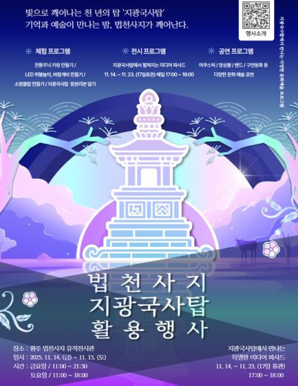 원주시역사박물관(관장 김영언)은 11월 14일(금)~15일(토), 법천사지 유적전시관에서‘2025년 법천사지 지광국사탑 활용 행사와 미디어파사드 전시’를 개최한다.