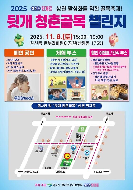 목포시는 뒷개로상가번영회(회장 박성조)와 공동으로 ‘2025 뒷개 청춘골목 챌린지’를 오는 11월 8일(토) 오후 3시부터 원산동 온누리어린이공원 일원에서 개최한다.