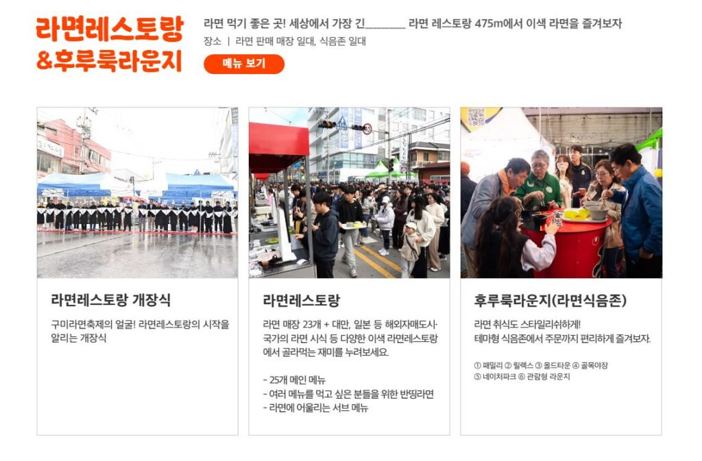 특히 올해는 QR 주문 시스템을 도입해 대기 시간을 줄였으며, 갓 튀긴 라면으로 만든 25가지 창의 요리와 ‘반띵라면’ 등 다양한 메뉴가 관람객의 입맛을 사로잡을 예정이다.