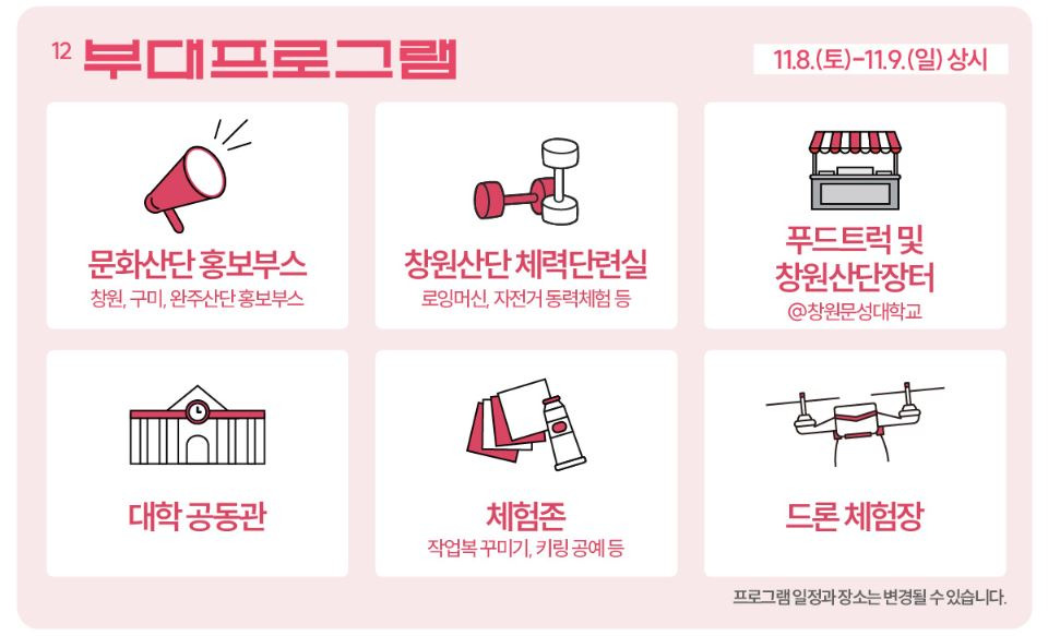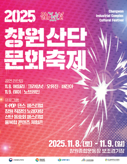 2025년 11월 8일(토)부터 9일(일)까지 창원스포츠파크 보조경기장과 문성대학교 일원에서 창원산단 문화축제가 개최합니다.