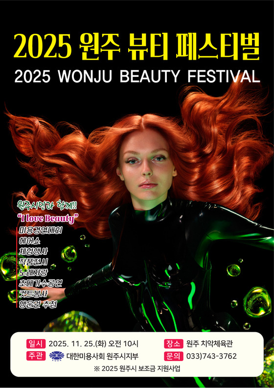 대한미용사회 원주시지부가 주관하는 ‘2025 원주 뷰티 페스티벌’이오는 25일 치악체육관에서 개최된다.