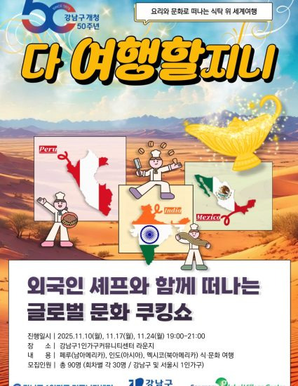 이번 행사는 그간 높은 참여율을 보여온 글로벌 요리 프로그램의 호응에 힘입어, 강남구 개청 50주년을 맞아 음식으로 문화를 체험하고 교류하는 자리로 확장한 기획이다.