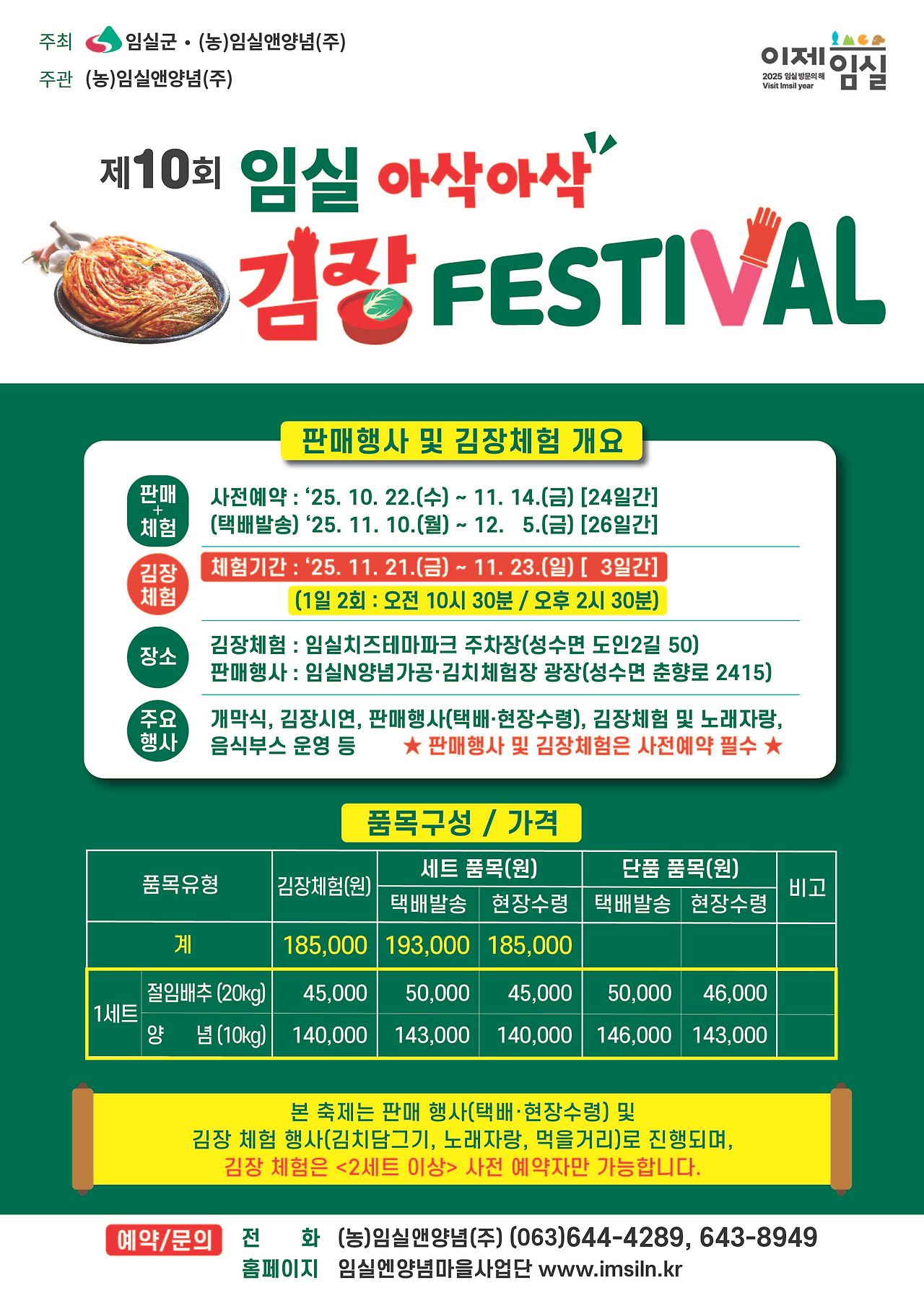 임실군표 아삭아삭 김장페스티벌 체험행사가 오는 21일부터 23일까지 임실치즈테마파크 주차장 일원에서 개최된다.