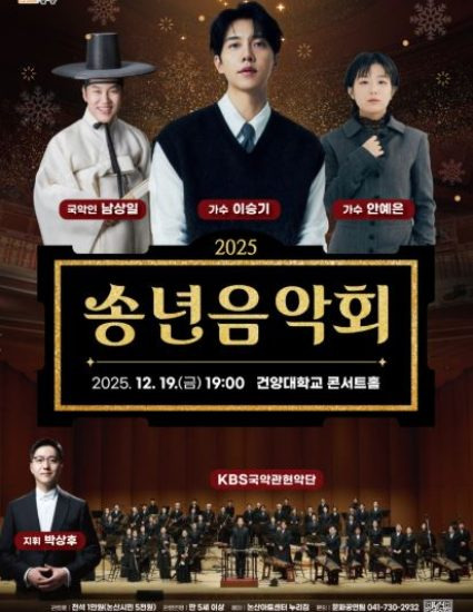 논산시, 논산문화관광재단에서 주관하여 공연하는 2025 송년음악회가 2025년 12월 19일 건양대학교 콘서트홀에서 개최합니다.