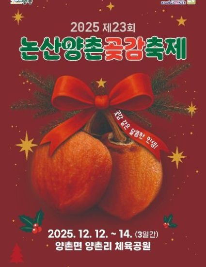 전국 최고의 당도를 자랑하는 양촌곶감축제가 2025년 12월 12일부터 14일까지 논산 양촌면 양촌리 체육공원 일원에서 개최합니다.