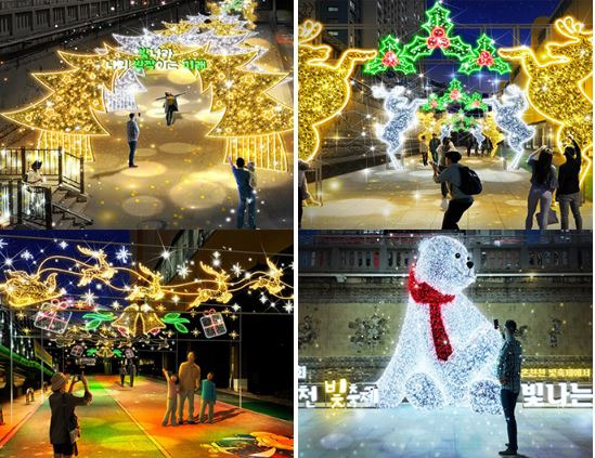 공영주차장 하부에는 갖가지 색의 라인 조명을 설치하고, 담장 물고기 조형물에는 푸른 물결 조명을 추가해 바닷속을 거니는 듯한 분위기를 연출한다. 천장에는 스노우폴 조명으로 눈 내리는 듯한 광경을 보여준다. 4번 출구 하부 눈꽃광장에는 미디어 터널을 설치해 형형색색의 조명과 눈결정체를 띄워 겨울 계절감을 선사한다.