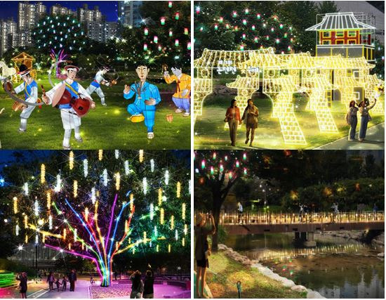 이번 축제는 ‘온천천 연가(戀歌)’를 주제로, 온천천 일원 약 1.1km 구간에 걸쳐 다채로운 빛 조형물을 선보입니다.