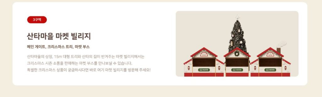 연말연시 분위기를 즐길 수 있도록 크리스마스 마켓 빌리지를 조성되어 운영됩니다.