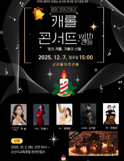 소리울도서관 관계자는 “시민들이 한 해를 따뜻하게 마무리할 수 있도록 겨울 감성을 담은 공연을 준비했다”며 “촛불처럼 은은하고 포근한 음악이 공연장을 채울 것”이라고 전했다.
