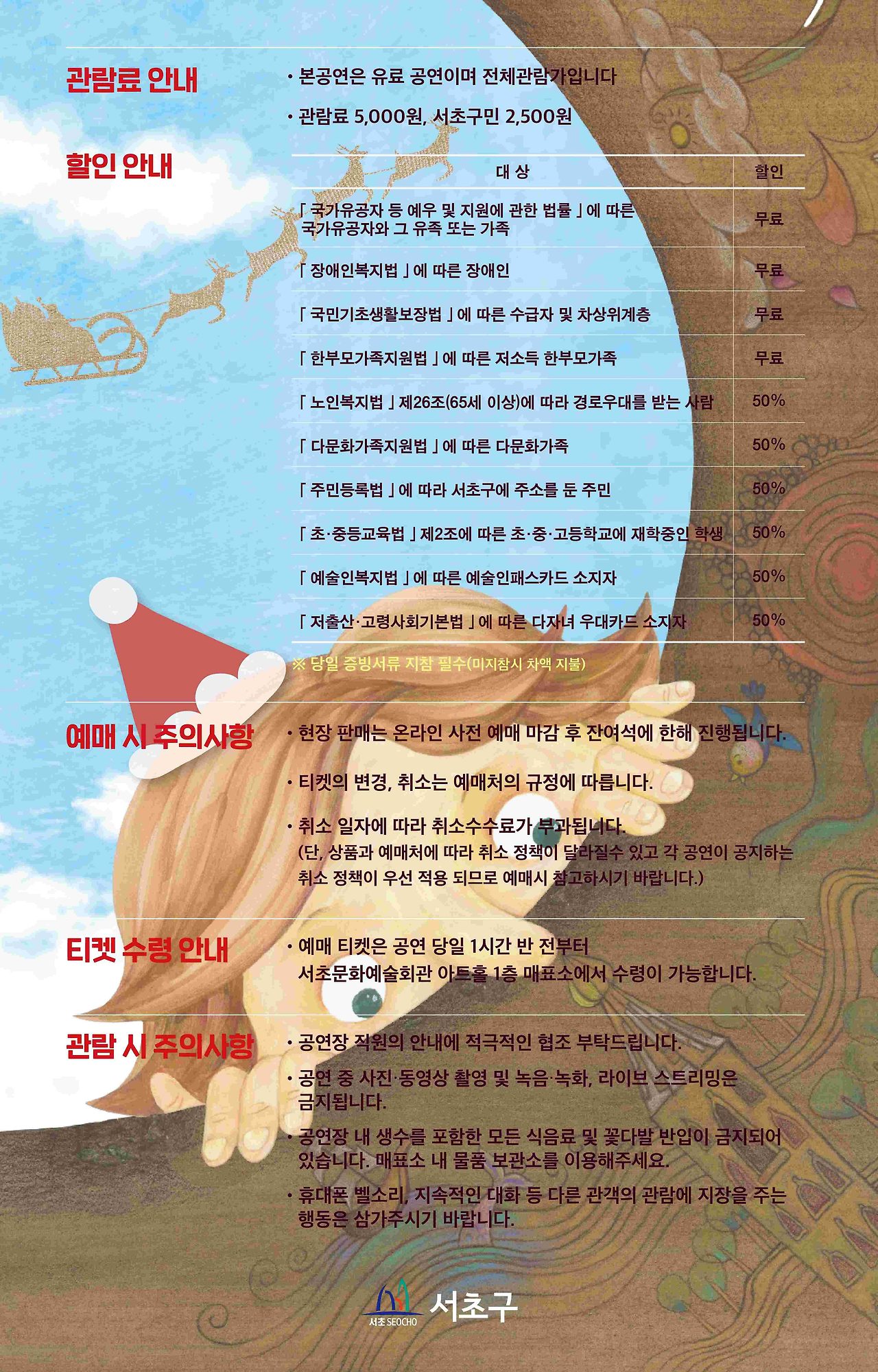서초구민 우선예매 : 12. 5.(금) 09:00 ~ 12. 8.(월) 09:00