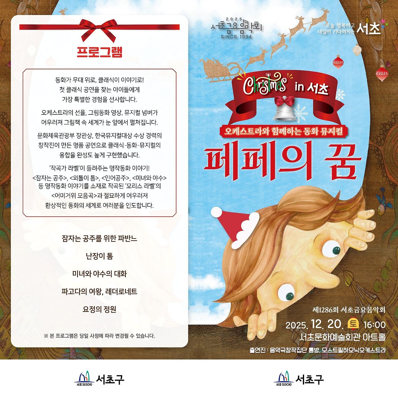 크리스마스 in 서초 <페페의 꿈> 동화 뮤지컬이 개최합니다.