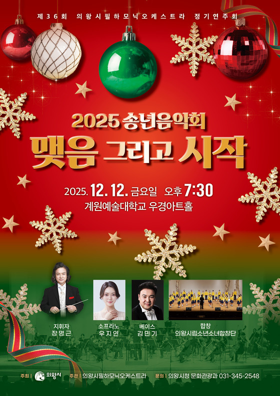 이번 공연은 의왕시필하모닉오케스트라의 제36회 정기연주회로, 시민에게 연말 문화 향유 기회를 제공하고 새해의 희망적 메시지를 전하고자 마련됐다.