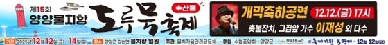제15회 양양 물치항 도루묵 축제가 12월 12일부터 14일까지 3일간 양양 물치항 일원에서 열린다.