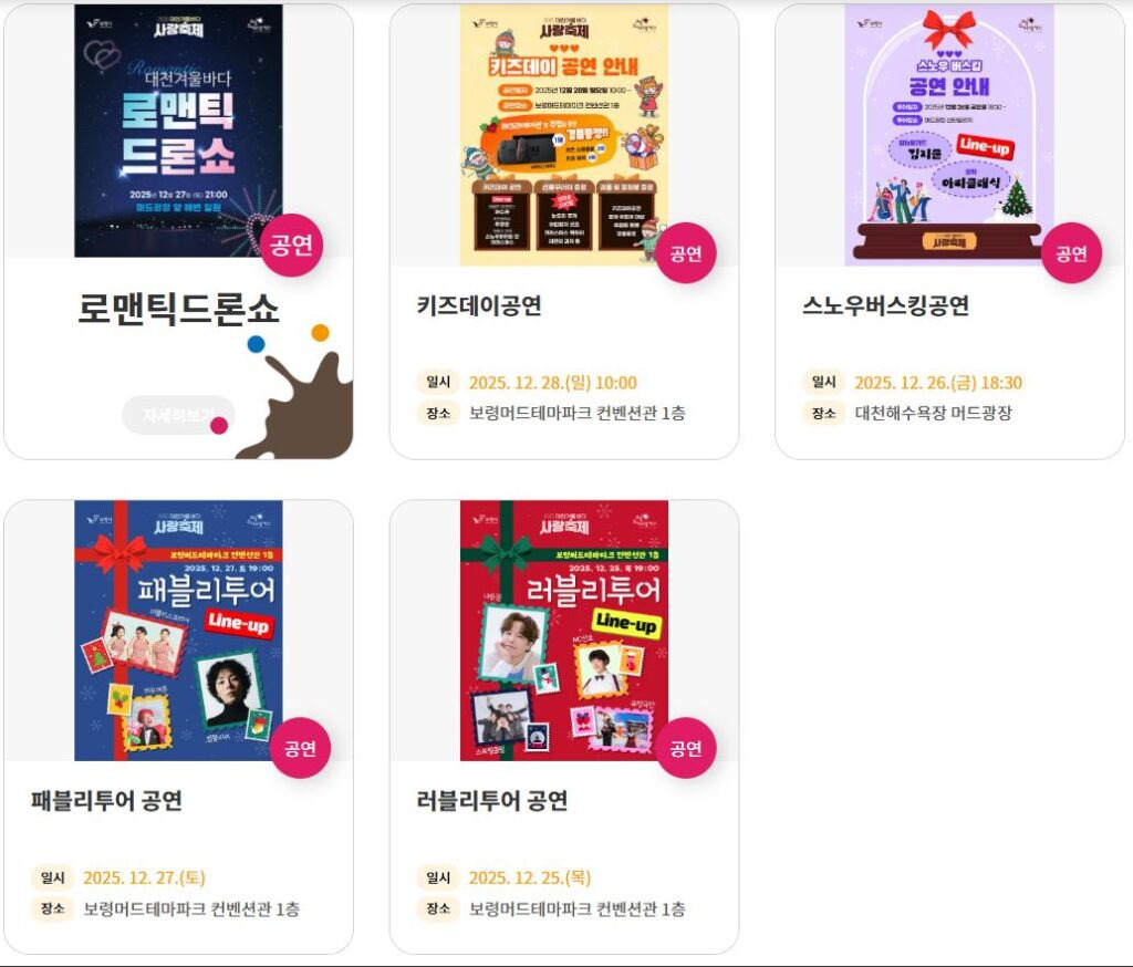 대천겨울바다, 빛 그리고 사랑이라는 주제로 펼쳐지는 대천겨울바다사랑축제가 2025년 12월 24일부터 28일까지 보령머드테마파크에서 개최합니다.