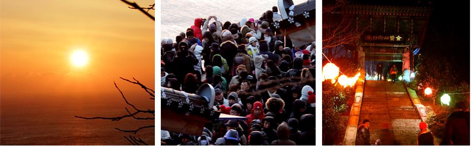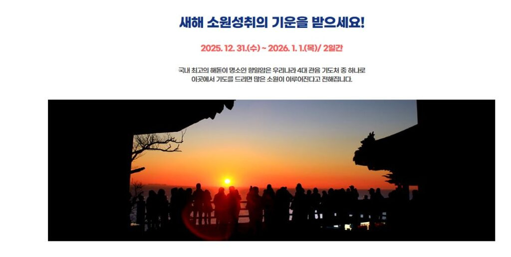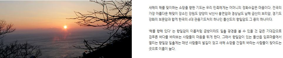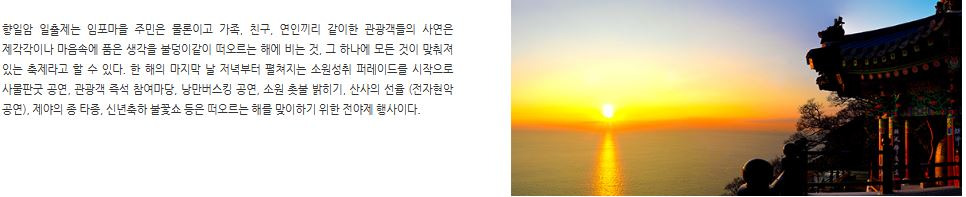 -여수 향일암은 매년 12월 31일이 되면 새해에 대한 소망을 기원하는 일출행사개최