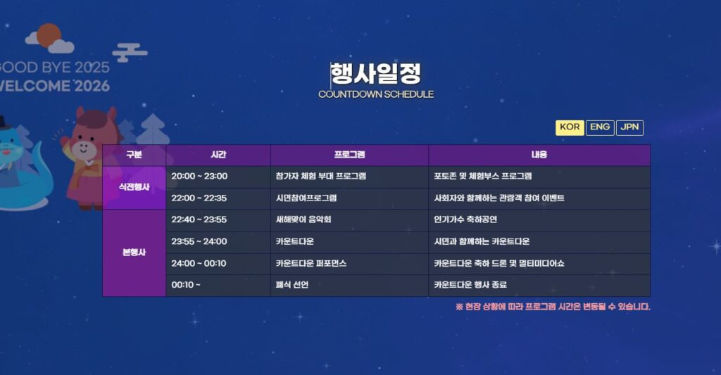 행사기간 : 2025.12.31~2026.1.1 / 2일간