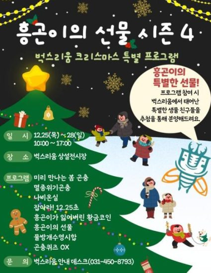 시흥시 곤충전시체험관 벅스리움이 크리스마스를 맞아 12월 25일부터 28일까지 ‘흥곤이의 선물’ 시즌4를 운영한다.