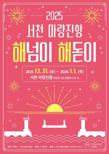 일몰과 일출을 동시에 감상할 수 있는 서천 마량진항에서 서천 마량진항 해넘이 해돋이 축제가 2025년 12월 31일부터 2026년 1월 1일까지 개최합니다.