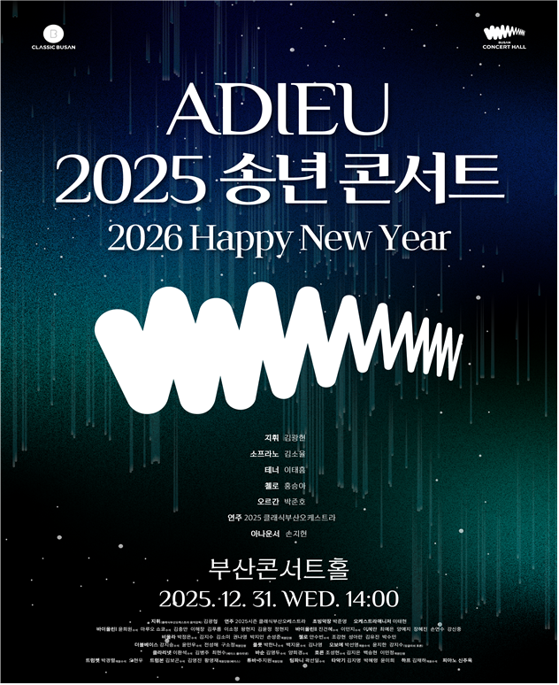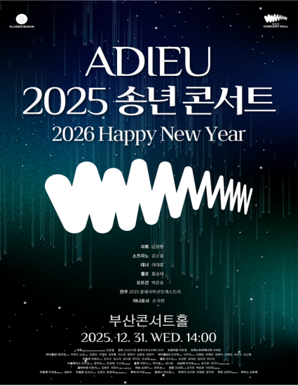 클래식부산은 2025년 부산콘서트홀의 성공적인 개관과 완성도 높은 첫해를 함께한 시민들에게 감사의 마음을 전하기 위해 오는 12월 31일 오후 2시 부산콘서트홀에서 ‘아듀(ADIEU) 2025 송년 콘서트’를 개최한다고 밝혔다.