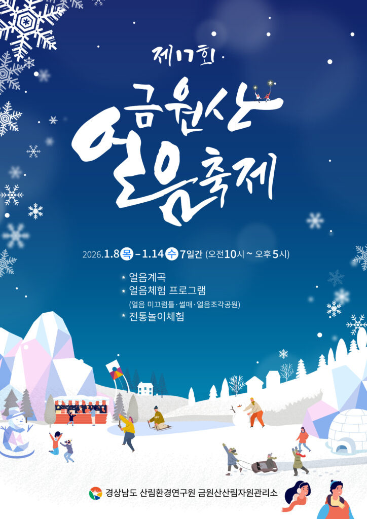 경상남도 금원산산림자원관리소는 30일 겨울 대표 축제인 ‘제17회 금원산 얼음축제’가 오는 2026년 1월 8일부터 14일까지 거창군 금원산자연휴양림 일원에서 열린다고 밝혔다.