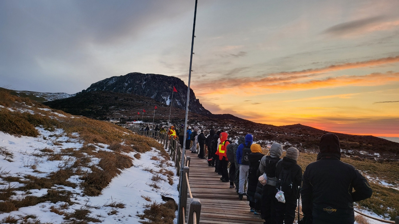 한라산도 새해를 맞는 발걸음으로 북적였다. 2026년 새해맞이를 위한 한라산 야간산행에는 정상 탐방 예약자 1,500명을 포함해 2,650여 명이 참여했다.