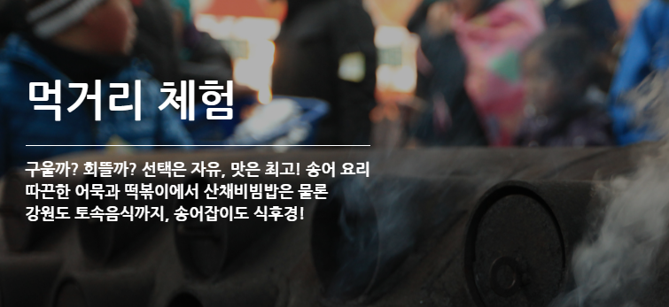 아울러, 축제장에는 회센터와 구이 터가 있어 송어회는 물론 ▲송어구이 ▲송어 매운탕 ▲송어 탕수 ▲송어 회덮밥 ▲송어 회무침 등의 송어 음식과 어묵탕, 우동, 토속 음식, 떡볶이, 라면 등 다양한 음식과 간식을 즐길 수 있다.