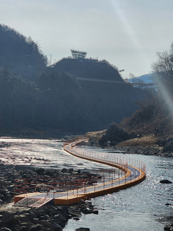 ‘한탄강 주상절리 가람길’은 수면 위를 따라 걷는 부교(플로팅 브릿지)로, 기존 전망 위주의 관람에서 벗어나 주상절리 협곡을 보다 가까이에서 경험할 수 있도록 기획된 동절기 관광 콘텐츠다. 방문객은 물 위를 걸으며 한탄강의 현무암 협곡과 주상절리 절경을 눈높이에서 감상하고, 한탄강이 지닌 지질학적 가치와 경관의 특징을 체감할 수 있다.