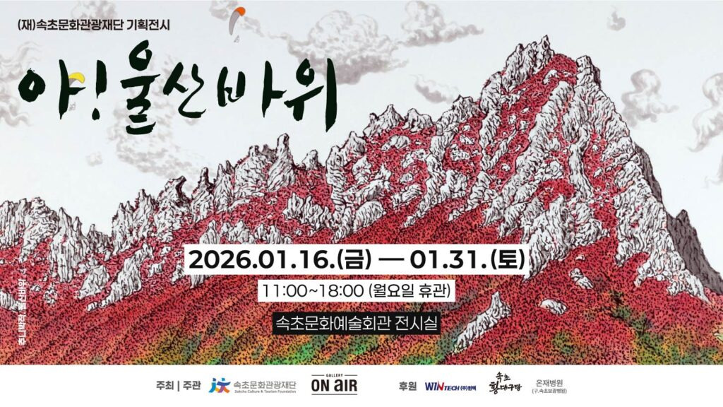 속초문화관광재단은 1월 16일부터 31일까지 속초문화예술회관 전시실에서 기획전시 ‘아! 울산바위’를 개최한다.