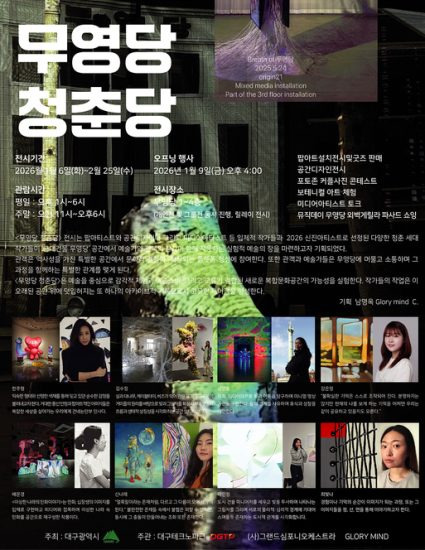 이번 ‘무영당 청춘당’ 전시는 대구시와 지역 문화예술가와의 협업을 통해 2026년 신진 아티스트로 선정된 청춘 세대 작가들이 무영당이라는 공간을 매개로 만나 교류하는 실험적 예술의 장으로 기획됐다. 예술가와 관객의 감각이 함께 호흡하는 새로운 전시 경험을 제안한다.