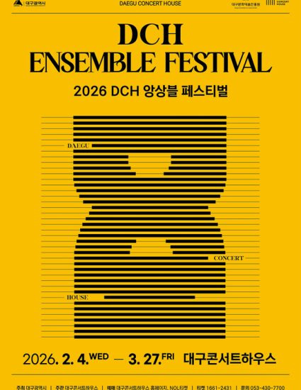 박창근 대구콘서트하우스 관장은 “DCH 앙상블 페스티벌은 실내악이 가진 내밀한 대화와 폭발적인 에너지를 가장 가까이서 느낄 수 있는 축제”라며 “국내외 우수 단체들의 연주와 지역 작곡가들의 창의적인 신작이 어우러지는 이번 무대를 통해 대구 시민들이 클래식 음악의 진정한 매력을 발견하시길 바란다”고 말했다.