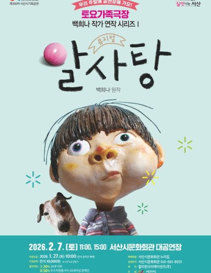 충남 서산시는 오는 2월 7일 오전 11시와 오후 3시 문화회관 대공연장에서 가족뮤지컬 ‘알사탕’을 개최한다고 밝혔다.