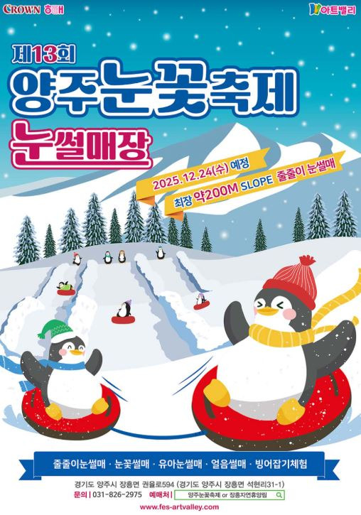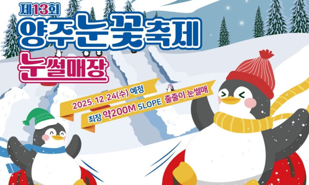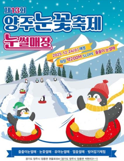 제13회 양주눈꽃축제 눈썰매장이 2026년 1월 15일 개막하여 2026년 2월 18일까지 장흥자연휴양림에서 개최합니다.