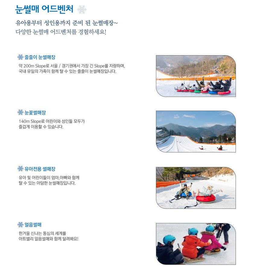줄줄이눈썰매, 야외 조각작품 전시, 스노우마운틴 체험, 푸드트럭 등이 펼쳐집니다.